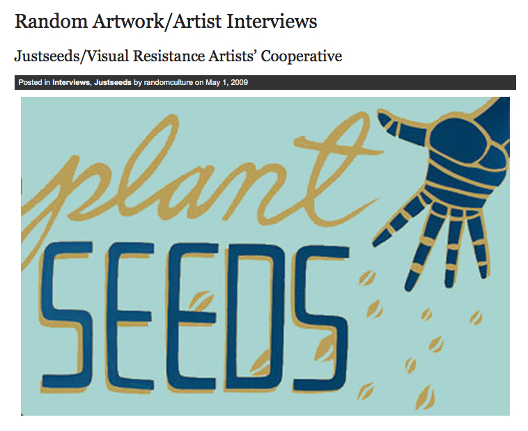 My new project Random Artwork/Artist Interviews has launched! The first interview was conducted with the political art collective Justseeds! The site will serve as a space for interviews of contemporary artists and collectives to discuss their work and the ideas that inform their artistic practice.