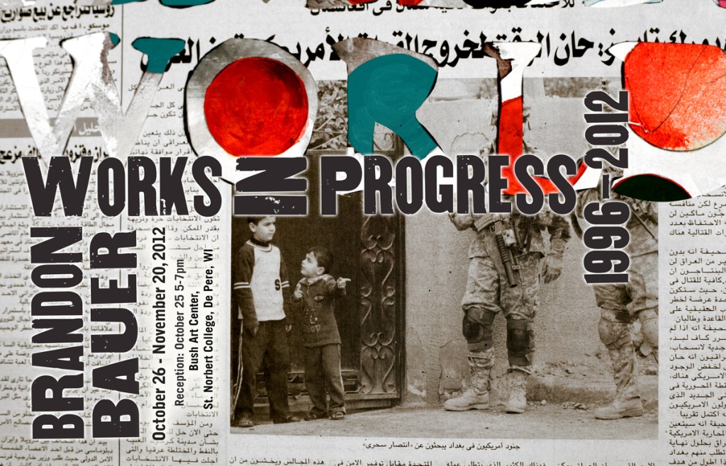 The following interview was conducted with the curator Shan Bryan-Hanson about my upcoming exhibition Brandon Bauer: Works In Progress 1996-2012. The exhibition will be held in the Bush Art Center Galleries at St. Norbert College From October 26th through November 20th 2012, and the opening reception will be October 25th from 5-7pm.