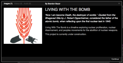 I have begun working on a new project titled “Living With The Bomb”. It is a project exploring nuclear proliferation, nuclear disarmament, and peoples movements for the abolition of nuclear weapons. I have began a few associated sites related to the exploration and development of the work. There is a wordpress site relating to research and development of the project that can be found here. I have also started a timeline relating to my research that can be found here. Both of these site are in progress and will act as a supplement to the larger project and to the work produced.