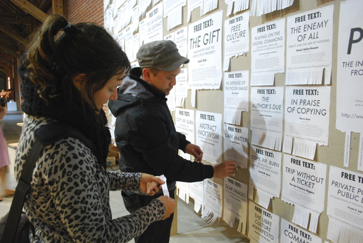 My essay To Open […] To Collect […] To Expand […] To Continue: Richard Serra’s Verb List, Post-Internet Appropriation, and the Culture of the Use of Forms was cited, included within, and available for download in the installation “Free Texts” by San Francisco based artist Stephanie Syjuco. Syjuco’s installation functions as a physical archive, public reading room, and printing site for texts dealing with the issues of digital copyright, open source culture, alternatives to capitalism, and the state of the intellectual commons in the 21st Century. The project was Commissioned for the ZERO1 Art and Technology Biennial in San Jose, CA. from September 12 – December 5, 2012, and has since been exhibited in Paris, France, Karlsruhe, Germany, Hasselt, Belgium, among over venues.