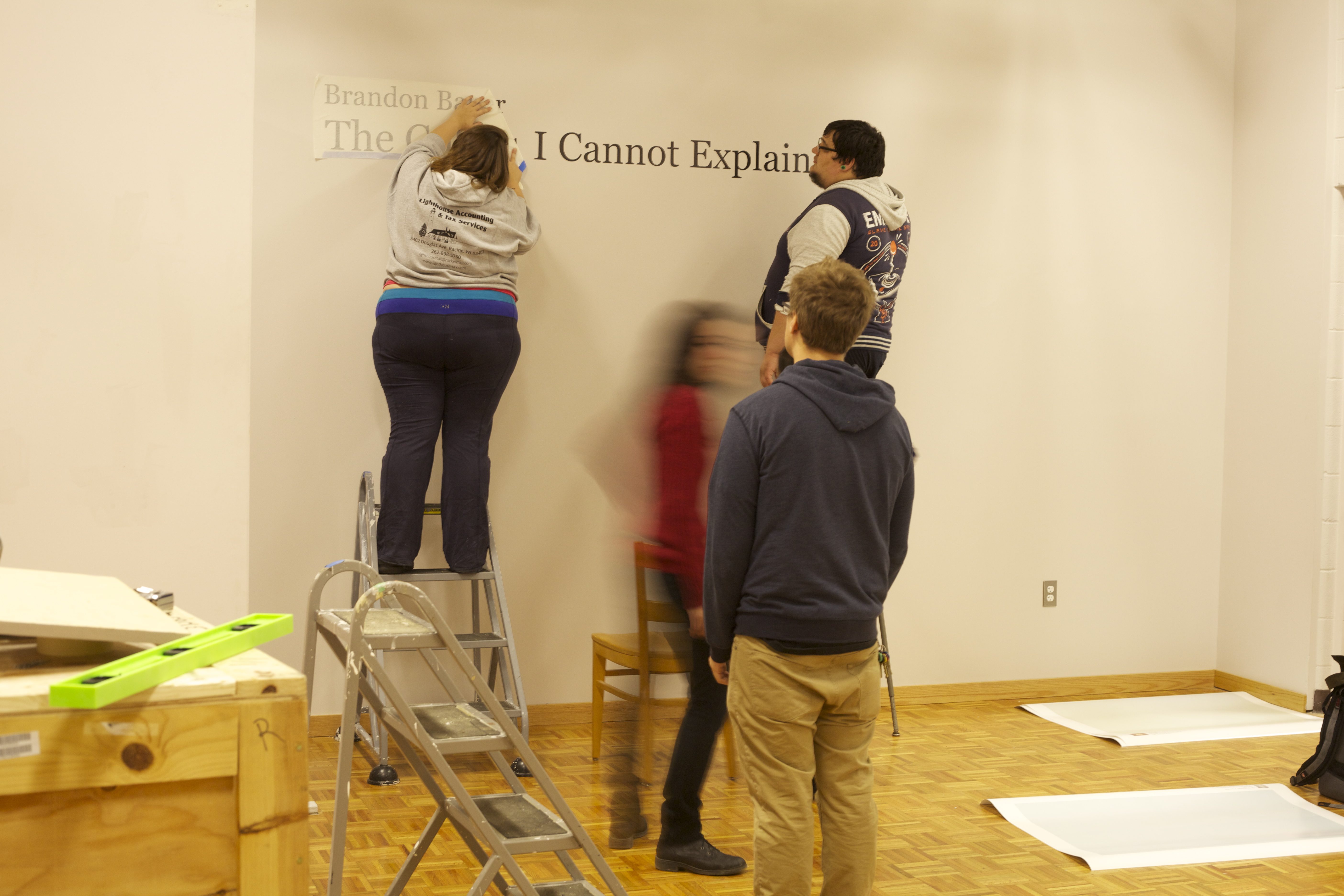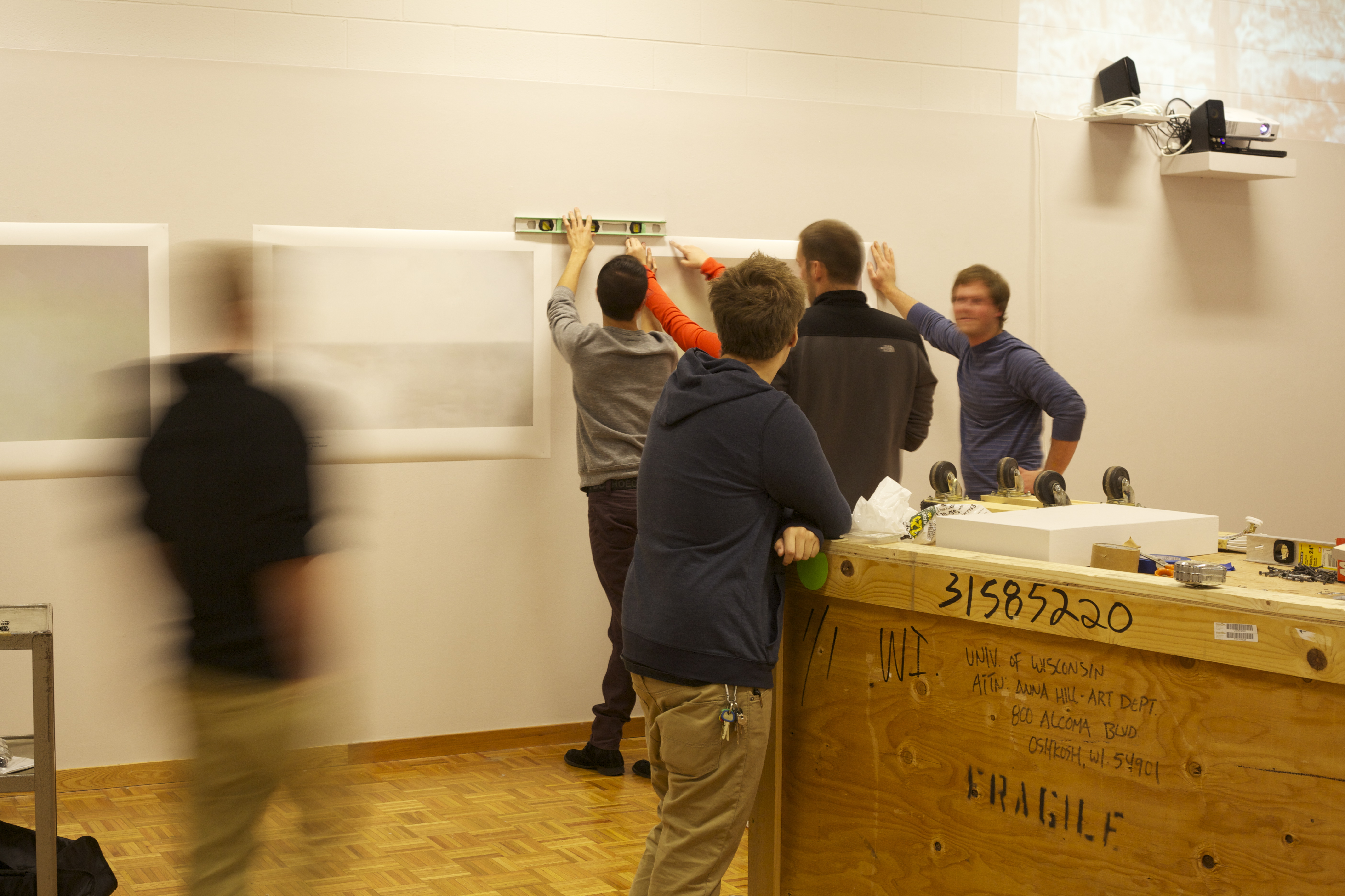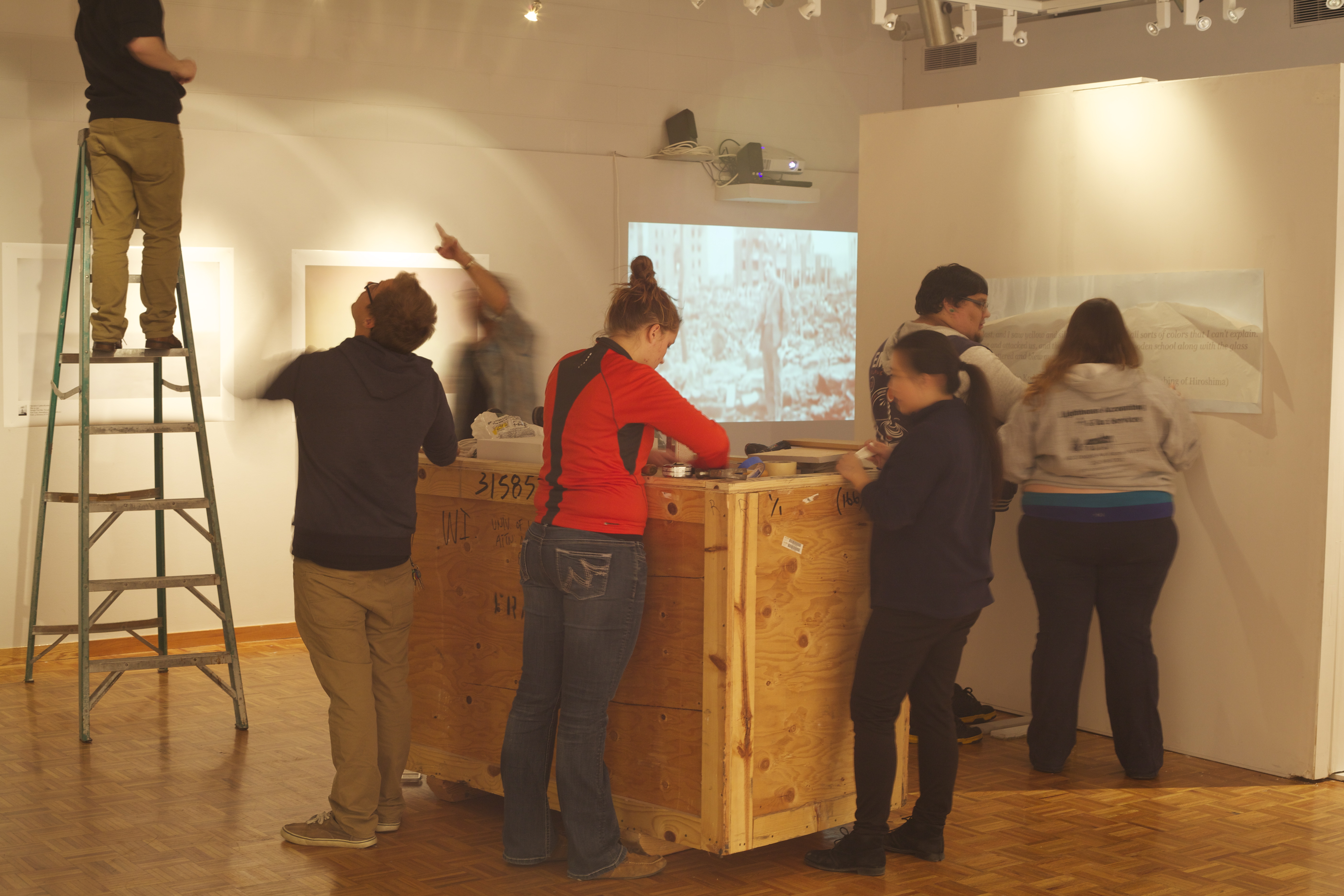 It was great to work with the students from the ART 330 Exhibition Design course and their professor E. Jeff Lipschutz during the installation! Here are some photos of the work going up.