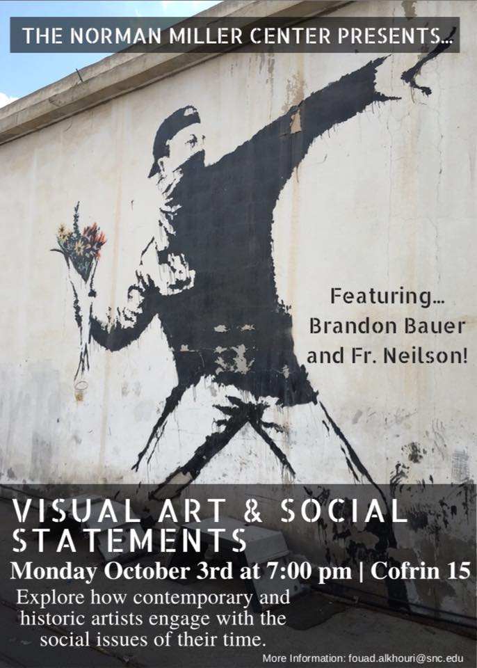 I recently participated in a lecture titled “Visual Art & Social Statements: Peacemaking Through Art” with Fr. James Neilson sponsored by the Norman Miller Center for Peace, Justice & Public Understanding. The lecture was livestreamed on facebook and can be viewed at the following link: