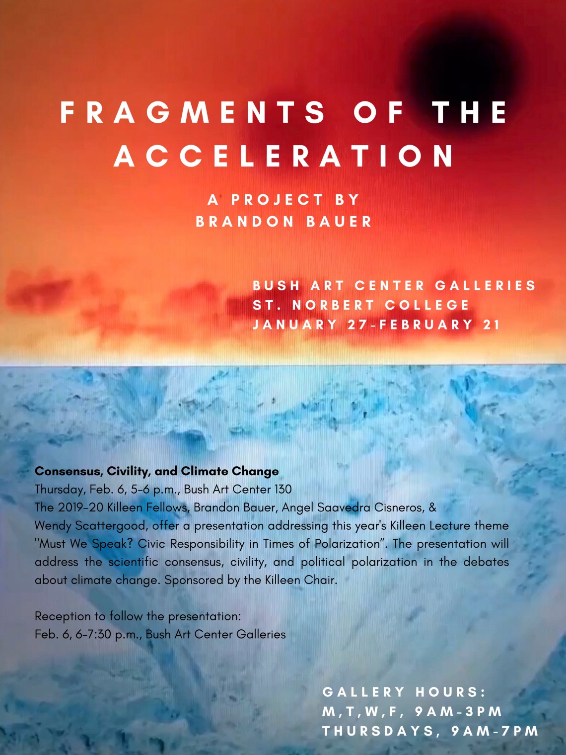 The 2019 -2020 Killeen Fellows, Brandon Bauer, Angel Saavedra Cisneros, & Wendy Scattergood offer a presentation addressing this year’s Killeen Lecture theme “Must We Speak? Civic Responsibility in Times of Political Polarization”. The presentation will address the scientific consensus, civility, and political polarization in the debates about climate change. Sponsored by the Killeen Chair.