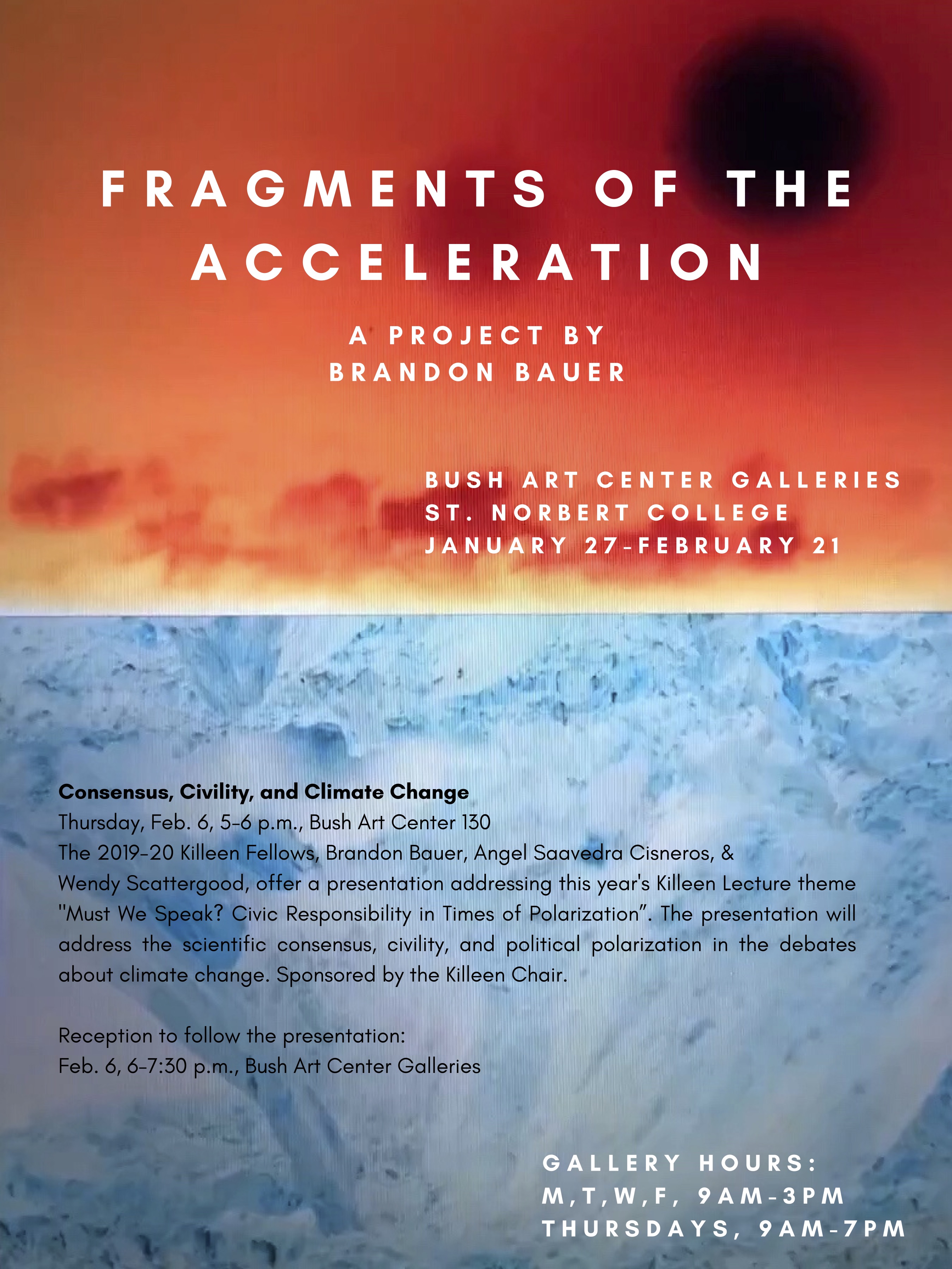 The 2019 -2020 Killeen Fellows, Brandon Bauer, Angel Saavedra Cisneros, & Wendy Scattergood offer a presentation addressing this year’s Killeen Lecture theme “Must We Speak? Civic Responsibility in Times of Political Polarization”. The presentation will address the scientific consensus, civility, and political polarization in the debates about climate change. Sponsored by the Killeen Chair.